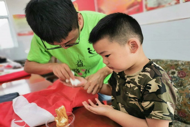 志愿者悉心照顾小孩子