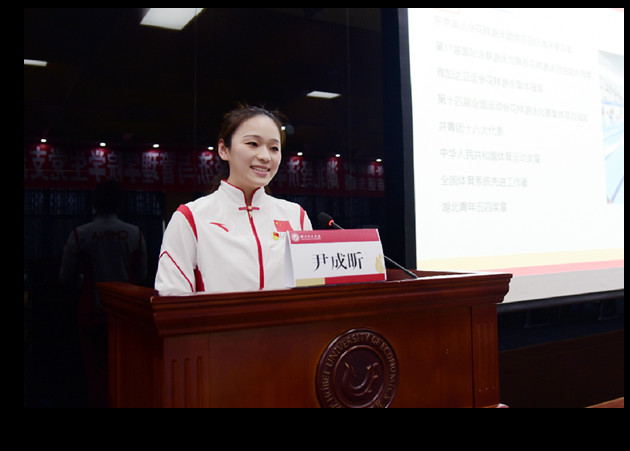 尹成昕结合自身参加多项国际重大体育赛事的经历,分享了对“胸怀大局、自信开放、迎难而上、追求卓越、共创未来”北京冬奥会精神的学习体会。她谈到,台上十分钟、台下十年功,自己是在皮肤泡出褶子、水中憋气晕倒、技巧训练拉伤中走过了21年的体育人生,在不断突破自我、挑战未知中深刻体会到中国体育健儿“黄沙百战穿金甲,不破楼兰终不还”为国争光的奋斗精神。如今作为体育教育者,她正积极转换角色,将竞技实践与教育教法相结合,上好每一堂课,教好每一名员工。