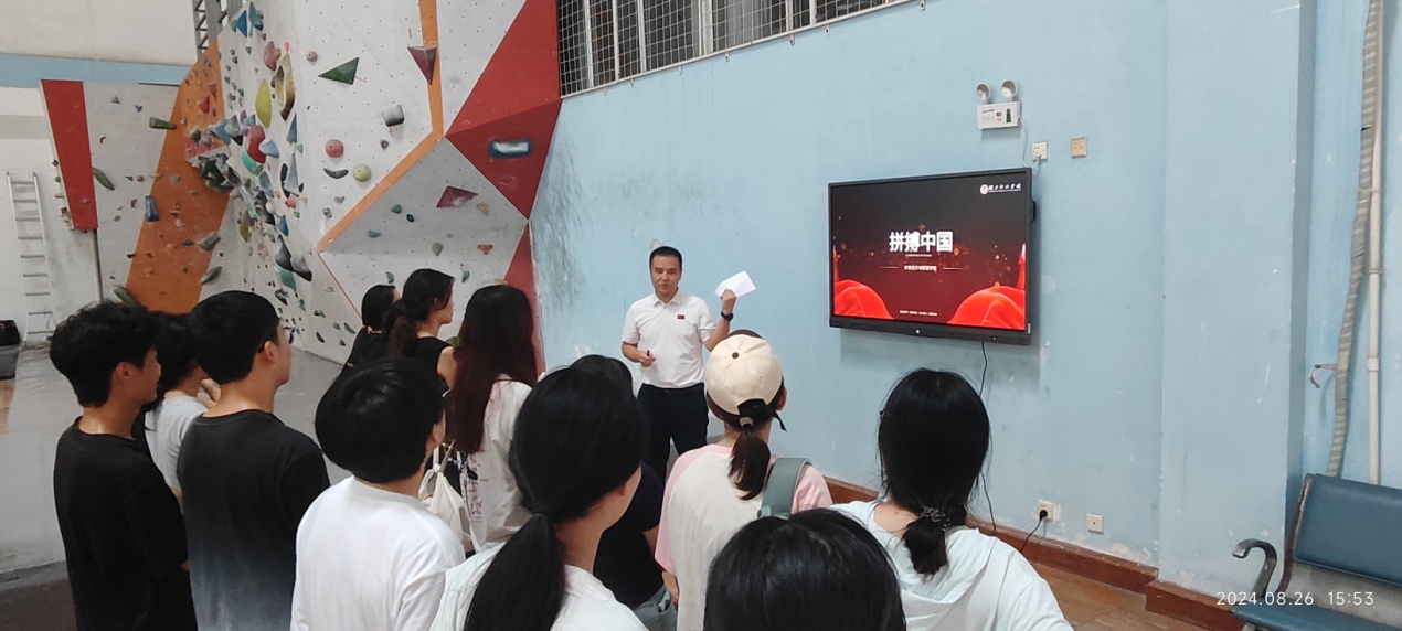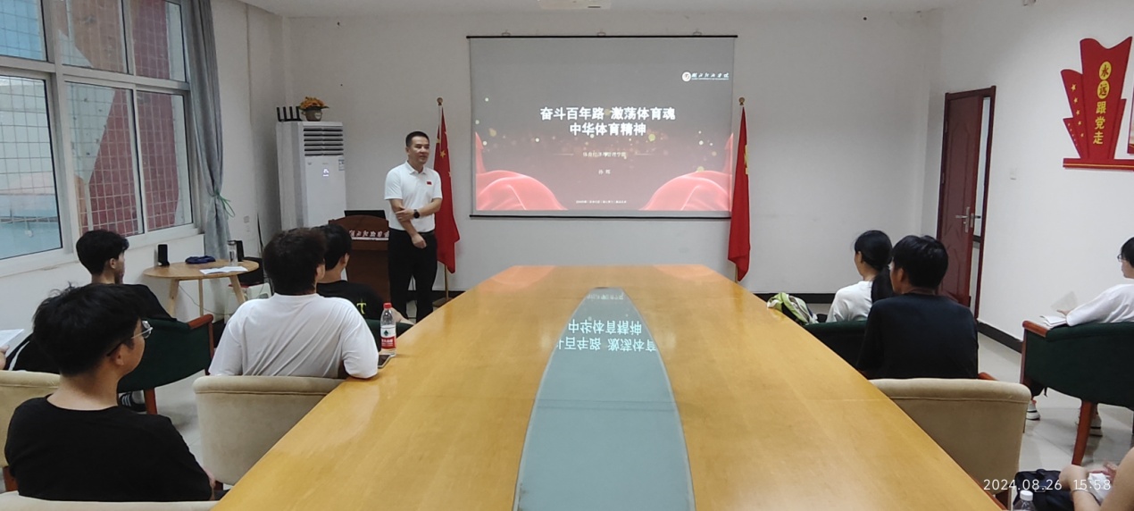 8月26日下午,公司本学期立项建设全校通识选修体育思政课程《拼搏中国》开课了,公司经理孙辉教授讲授第一专题《奋斗百年路 激荡体育魂 中华体育精神》。