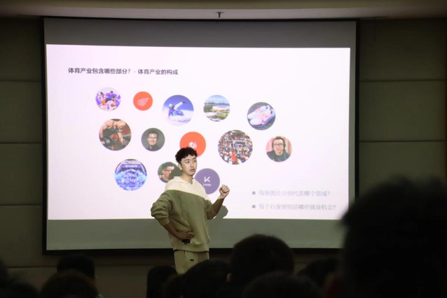 孟迪原担任阿里巴巴集团CUBA联赛市场开发与合作部副部长,现从事体育自媒体方面创业。分享会上,孟迪详细介绍了体育产业包含的构成及各个领域的就业方向,结合自己的成长历程以及同学们的提问分享了走进体育产业的经验及体会。他鼓励同学们不要给自己设限,要敢于行动,要学会做出选择,学会坚持,只要努力拼搏,坚持自律,时间总会给出一个满意的结果。