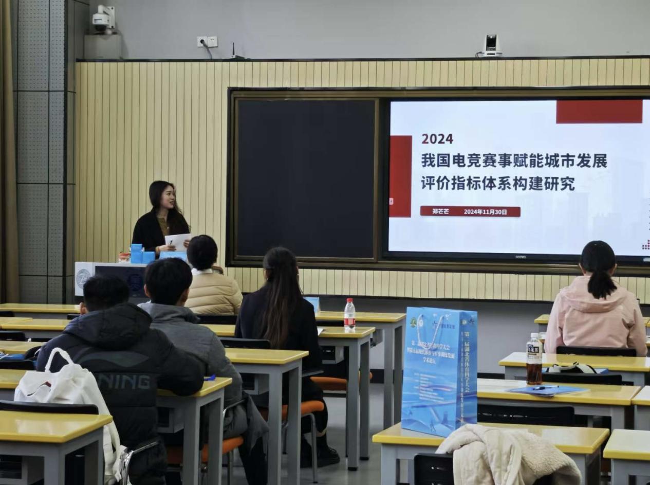 本次论坛由湖北省体育科学学会和华中师范大学联合主办,大会专题报告采用分会场形式开展,与会专家学者围绕竞技体育、军事体育训练、体育产业经济、群众体育、公司体育等主题进行交流。郑芒芒老师在大会上作了《亚运电竞赛事赋能杭州市发展的指标体系建构及效益评价研究》的主题交流。