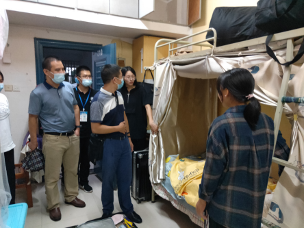晚上8点,公司党委书记王友刚、副经理孙辉率新生年级辅导员和班主任一起下寝室走访慰问了公司新生,院领导亲切地和新生们交谈,询问同学们是否适应新的环境、是否有生活上的困难。辅导员徐盛富老师提醒新生们在常态化疫情防控的特殊时期,注意个人卫生,保持寝室干净整洁,保护好人身安全、财产安全等。班主任胡俊老师和杨帅老师叮嘱同学们在寝室注意用电安全,也对新生们的一些疑惑点进行了详细的解答。