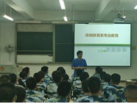 王老师围绕“什么是休闲体育?休闲体育培养什么样的人?如何培养人?同学们可以从那些方面努力?”等新生们关心的问题进行全面细致的解答,让新生更加深入的了解到休闲体育这个专业,对专业前景抱有信心。王老师还与新生积极互动交流,对员工提出的问题耐心解答,分享他的经验。