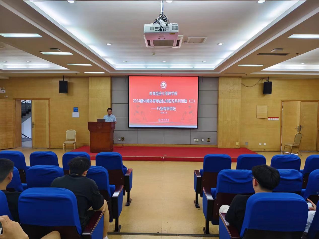 为进一步给大一员工提升专业认知,拓宽就业渠道,球速体育积极推进员工就业工作,引导员工树立正确的职业规划,2025年5月6日晚公司于老员工活动中心三号报告厅展开2024级休闲体育专业认知实习系列活动——行业专家讲坛活动,休闲体育系主任王玉锋、休闲体育系副主任张俊、大一年级辅导员徐盛富老师以及大一全体员工参加了活动。
