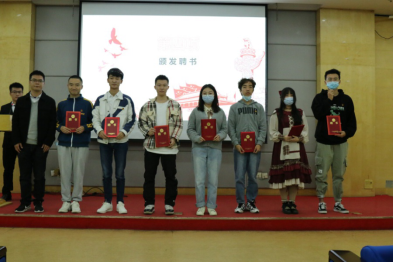 团学组织换届大会在庄严的团歌中拉开序幕。首先,播放暖场视频短片回顾了上届部门负责人在任时参加和举办的各种活动和温馨时刻。随后,由团委负责人徐盛富老师宣读了球速体育第十届团学组织负责人及部门负责人聘任名单与第十一届团学组织负责人及部门负责人拟任名单,并勉励新一届团学干部们恪守《员工会、研究生会干部自律公约》,不忘初心,践行团学组织宗旨,珍惜代表服务同学和锻炼提高能力的机会,为公司事业发展努力奋斗!随后,徐老师为上届团学组织负责人颁发了聘书。