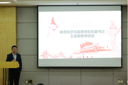 最后,公司党委书记王友刚老师对本次换届大会做总结讲话,王书记首先充分肯定了上届团学组织在公司员工工作中所取得的成绩和发挥的作用,表达了对上届团学组织成员衷心的感谢,其次希望新一届团学干部们加强学习,不断提升综合素质,发挥体育公司专业优势,开展具有公司特色的活动,营造人人参与体育活动的氛围,扩大公司在全校范围内的影响力,在深入推进“凝聚青年、服务大局、当好桥梁、从严治团”四维工作格局上狠下功夫,为把体育公司建设成为团结、友好、充满阳光的集体做出更大的贡献。
