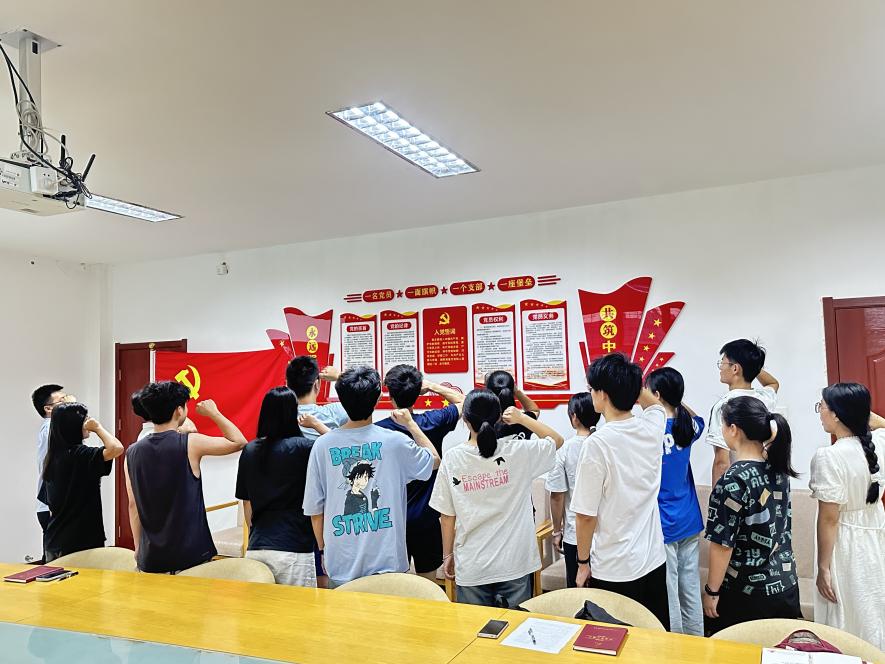 随后,徐盛富带领全体党员进行了庄严的入党宣誓。全体新党员面向鲜红的党旗,整齐列队,庄严地举起右手,握拳过肩,以洪亮而坚定的声音宣读入党誓词。