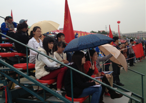 赛场上另外一道靓丽的风景线就是由体育系学子组成的裁判队伍。本届运动会上,除运动员外,体育系大部分同学都承担了裁判工作,在老师的带领下,他们担负着赛前检录,起点发令,器材列放,场地值守,终点计时计序,成绩传输登录…。运动员比赛只是一两个项目的拼搏,而裁判员则是三天全程连续紧张的坚守,正是他们默默辛苦的奉献,细心严谨的执裁,保证了比赛环境的公平和谐,成就了整个赛会的圆满成功。