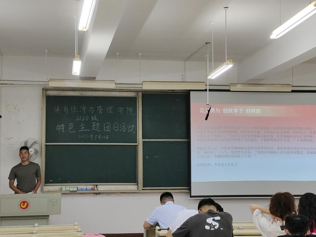 首先由主讲人休闲体育2041班团支书彭咏昕从做有理想的青年、做敢担当的青年、做能吃苦的青年及做肯奋斗的新时代好青年四个方面分享了我国一些优秀青年的事迹,同时邀请了2020级被授予“见义勇为优秀老员工”称号李爱龙、周浩然同学分享了自己的事迹。