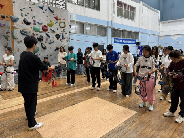 活动伊始,专业攀岩指导员胡颖、谭诗语、黄弘德为大家讲解攀岩的基本技巧、注意事项以及攀岩装备的正确使用方法。