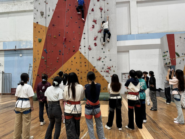 参与者们在做好热身准备后,满怀斗志地走向岩壁。岩壁之上,考研学子们眼神坚定,手脚交替间展现出不服输的韧劲:有的同学起初略显紧张,但在同伴的加油呐喊与指导员的实时鼓励下,逐渐找到节奏,一步一步向上攀升;有的同学即便中途体力不支,也咬牙坚持,用毅力克服登顶路上的障碍;攀岩爱好者们则充分展现专业素养,灵活穿梭于岩点之间,用流畅的动作诠释着攀岩运动的魅力。岩壁之下,欢呼声、加油声此起彼伏,大家相互鼓劲、彼此喝彩,形成了“勇攀高峰、互助共进”的良好氛围。