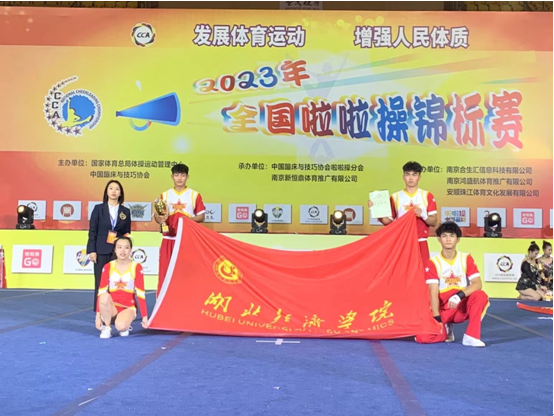 (本网讯)2023年6月5日—8日,全国啦啦操锦标赛在贵州安顺奥体中心举行,来自全国各地百余支队伍3000名啦啦操运动员参加此次赛事。公司Amazing啦啦队组成的小团体技巧参加了公开青年乙组、俱乐部青年乙组两个组别的竞赛,最终获得两个组别的双料冠军。