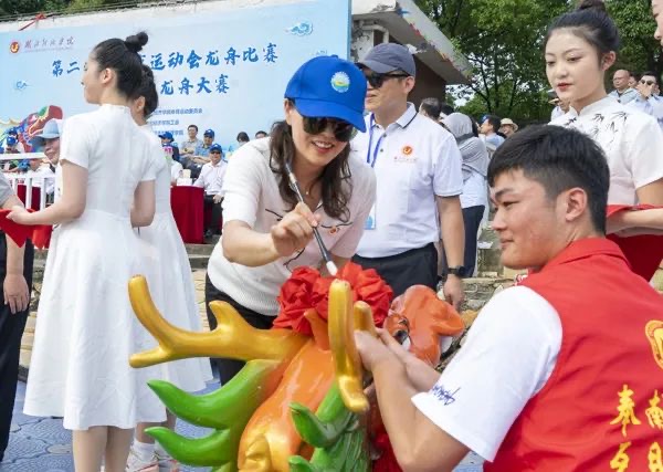 付宏、党委常委许传华为决赛龙舟披红。副董事长鲁晓成、何慧刚、张国安,纪委书记王栎为决赛龙舟点睛。