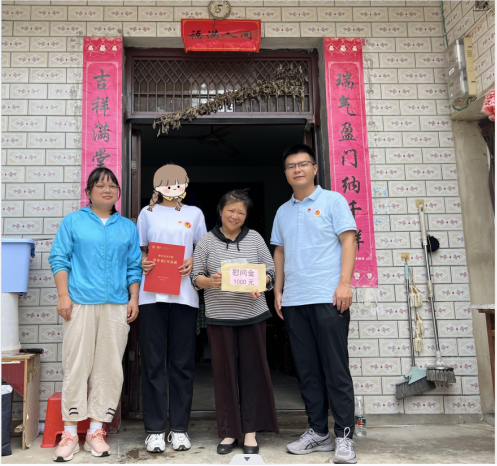 (本网讯)近日,为落实开展主题教育中关于“大兴调查研究”和学工处《关于开展2023年暑期走访调研工作的通知》的要求,深入了解公司受助员工及其家庭实际情况,提高精准资助水平,公司团委书记徐盛富和专任教师李鸿宜博士前往武汉市黄陂区员工家中走访慰问,宣传国家资助政策,增进家校联系,给员工送去温暖与关怀。