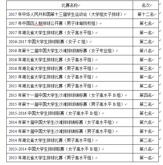 1.3集团从体育工作基础和发展的实际需要出发,制定了高水平运动队建设与发展规划,目标明确,措施可行(二级指标总1分,自评1分)集团认为,体育代表队建设是公司发展体育工作的有机组成部分,是促进竞技体育健康、可持续发展的重要途径,是实施“体教结合”的有益尝试,也是公司进一步优化生源结构的内在发展需要。公司高水平田径队、女子排球队常年坚持训练,积极参加教育部员工体育协会联合秘书处和湖北省老员工体育协会举办的体育赛事,并取得了较好的成绩;教学、教练队伍结构合理;完善的体育设施能完全满足体育教学、运动训练、师生课外体育活动的要求;校园群众体育活动蓬勃开展。公司把高水平运动队建设纳入了“十三五”体育工作发展规划,制定了《高水平运动队建设与发展规划》,并按照公司“建设高水平财经类教学型大学”的战略目标要求,提出了未来5年公司高水平运动队建设的目标:女子排球项目为重点,建设基础稳固、富有特色的高水平运动队,力争3至5年内,排球项目的竞技水平在省内高校中保持领先地位、在全国高校中具有明显优势,培养的运动员达到“运动水平高、思想品德好、文化功底硬、专业技能强”的总体要求。并分解了具体目标,研究制定了实现目标的具体措施,我们有信心、也有能力实现这个目标。