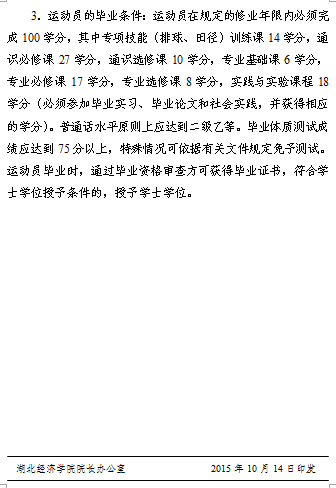 根据《球速体育welcome高水平运动队管理办法》(鄂经院发[2015]141号),高水平运动员入学后,编入体育经济与管理专业或休闲体育专业学习,执行相关专业的人才培养方案。根据工作需要,对高水平运动员选课提出如下意见: