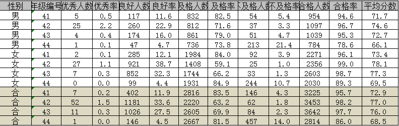 2017年球速体育welcome《国家员工体质健康标准》统计表