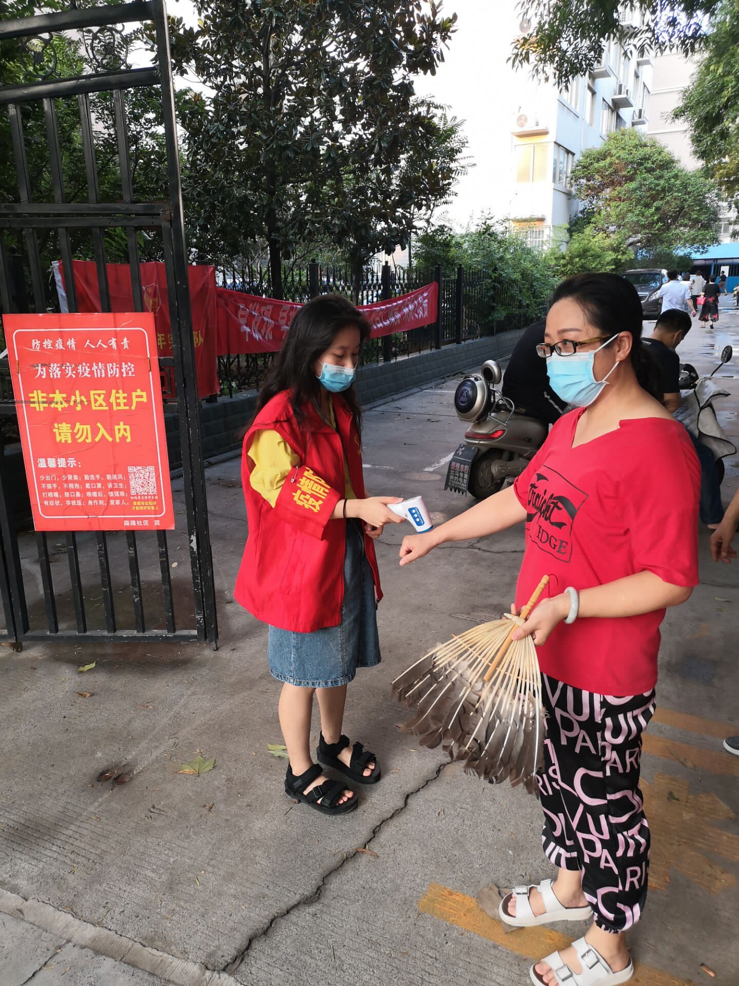 谭琪儿同学为出入居民测量体温