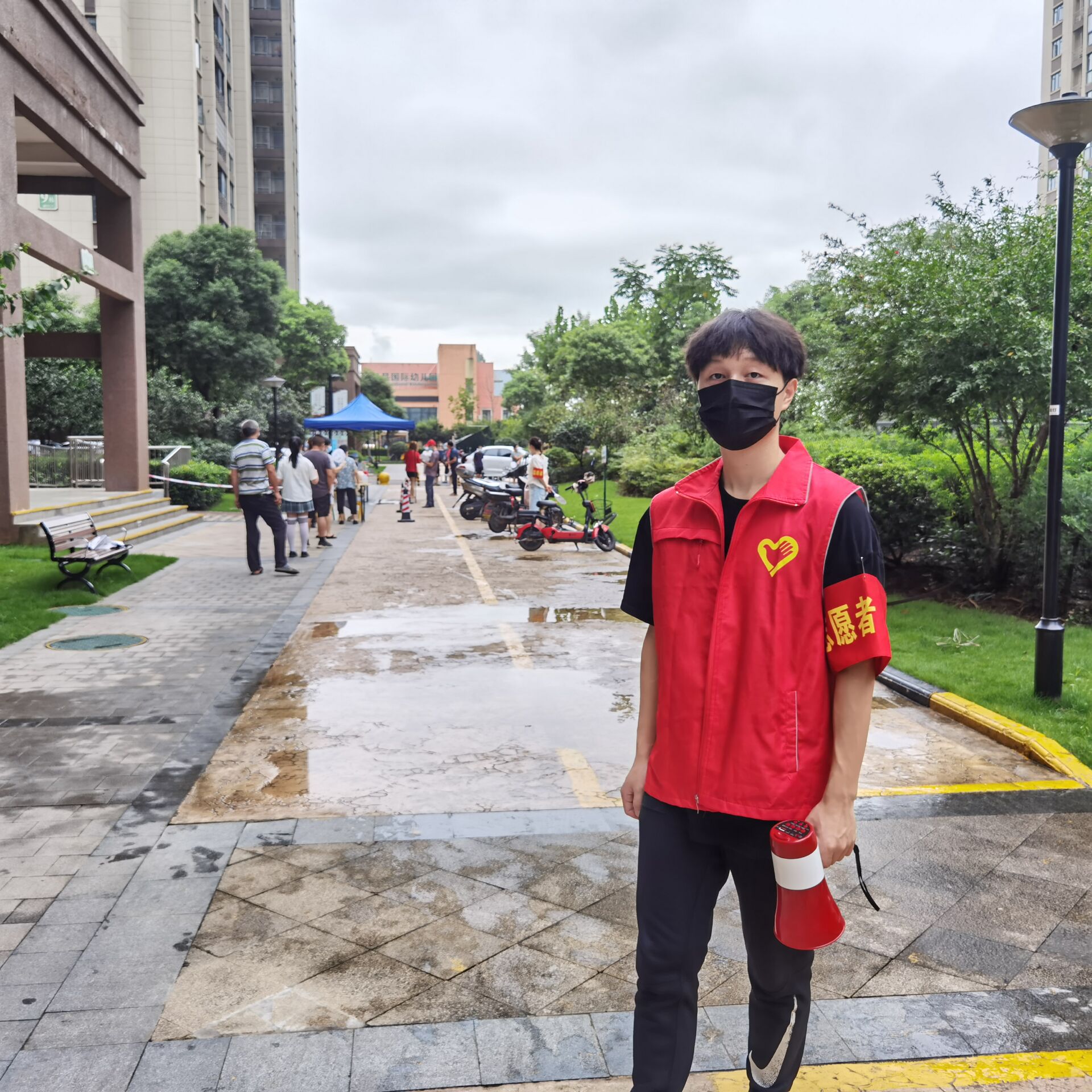 祝子为同学在社区核酸检测现场维护秩序