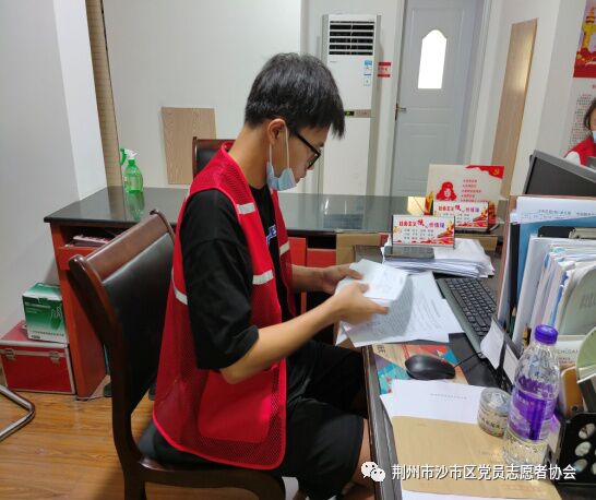 钟志聪同学在新洲区邾城街道进行核酸检测信息录入工作