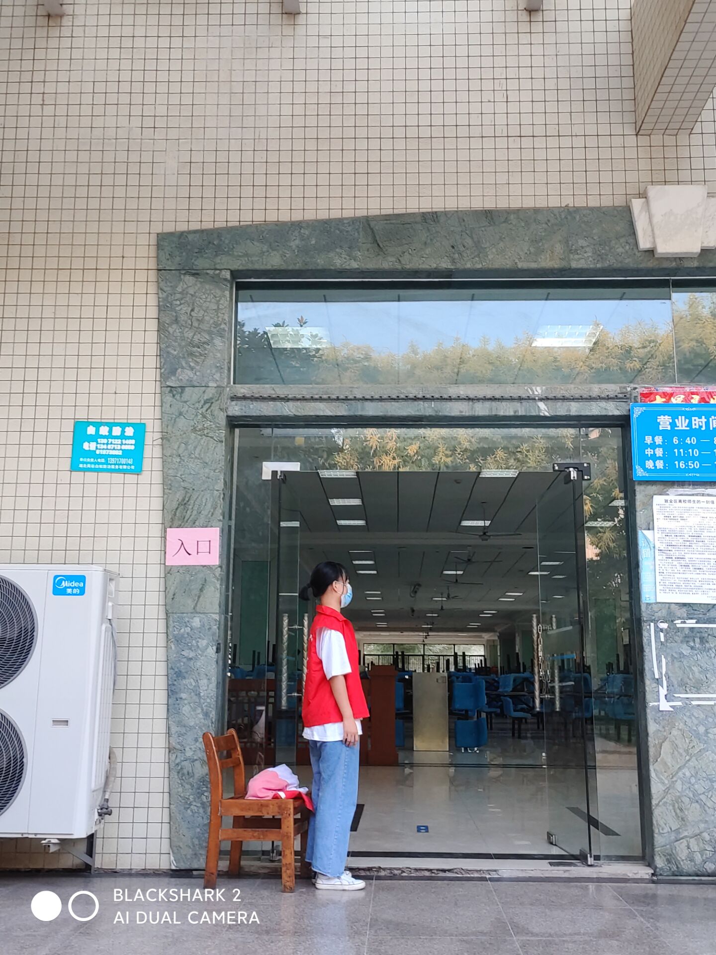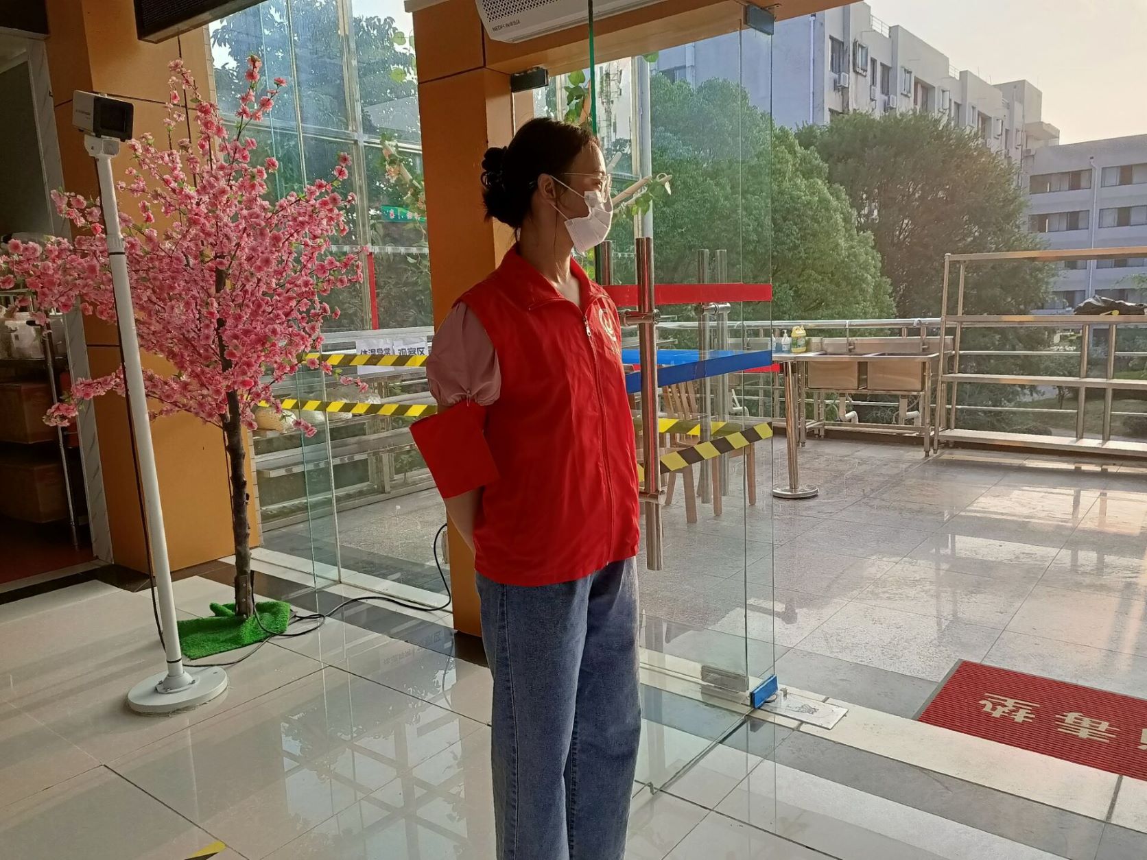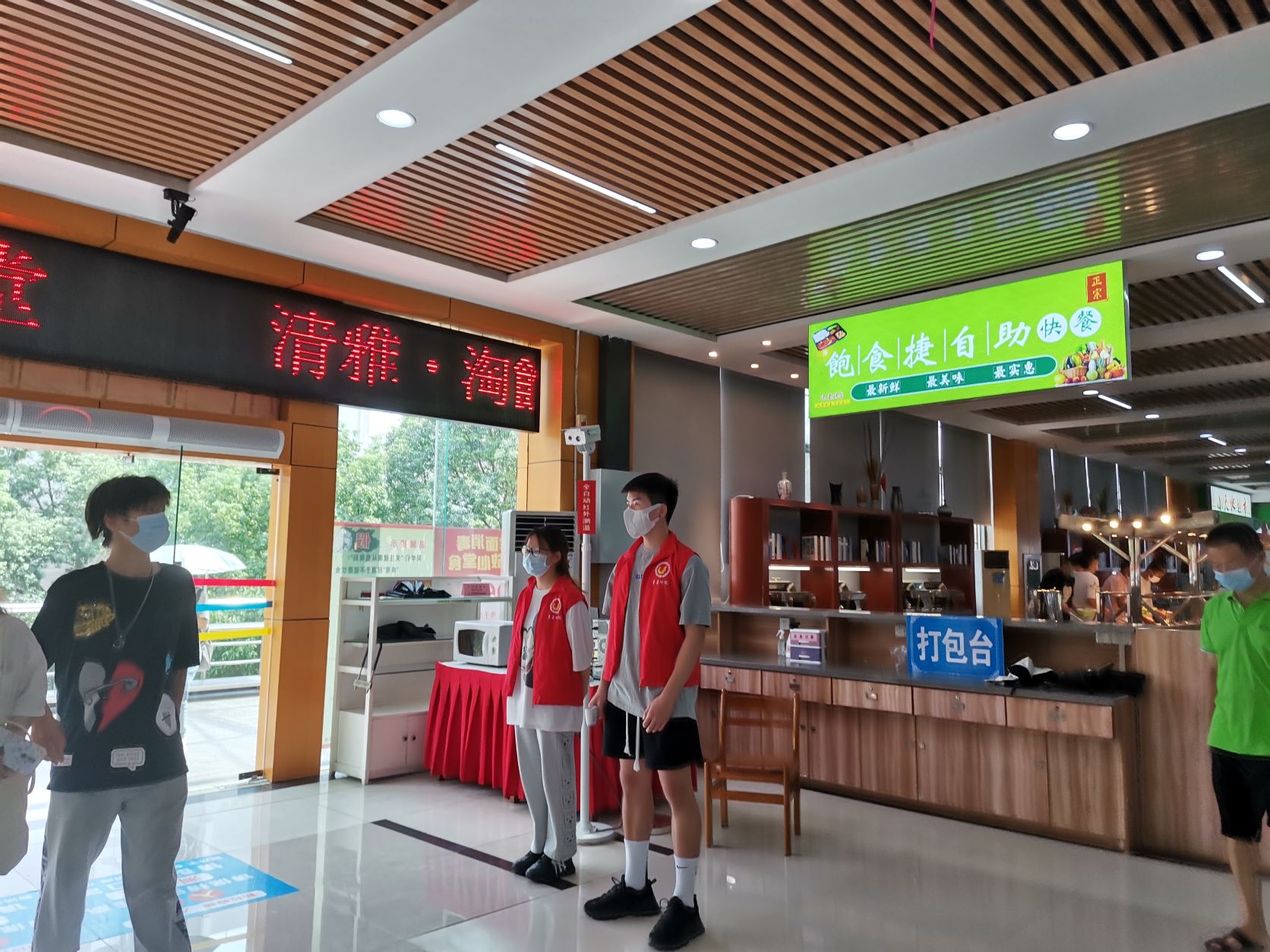 公司志愿者在三清园食堂维护食堂进出秩序