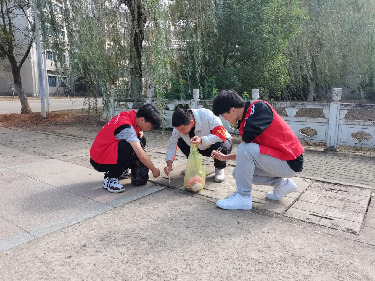 活动现场,同学们不怕脏、不怕累,积极主动地到每个角落去捡垃圾,大家明确分工,有条不紊,采用划片划域的方式,力争不留死角。经过两个小时的辛勤劳动,校园东区被大家打扫得干干净净。