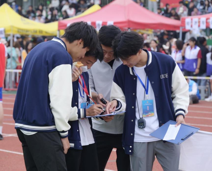 发令组的方辉雄同学来自休闲体育2242班,这也是他第二次担任员工裁判,方辉雄同学认为,运动会不仅仅考验运动员们的能力和专注度,对各个点的裁判员也是一道难题,现场杂音多,这要求裁判在嘈杂的环境下做出及时且准确的反应。此外,方辉雄同学表示正是因为学经理期对员工的能力进行培养,才让员工裁判在裁判工作上做到“游刃有余”。