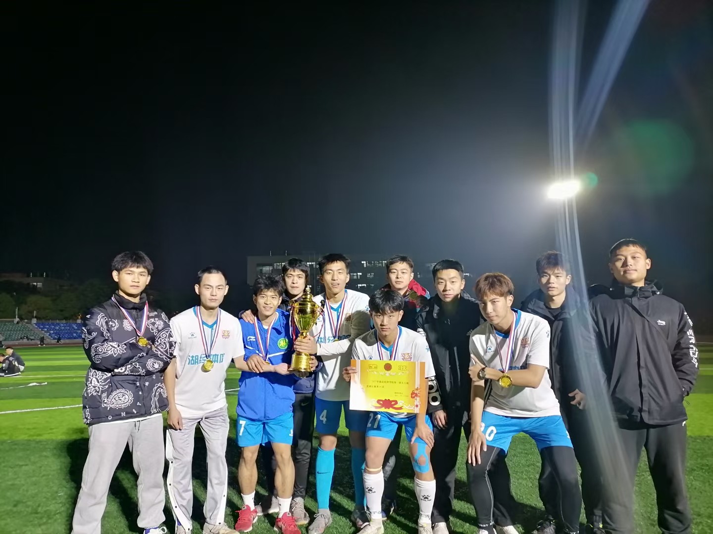 比赛伊始,“财经法”联合队率先得到一分。但公司球员们并没有气馁,在教练的指导部署下,积极跑位,不断传球进攻,寻找机会。在上半场即将结束时,公司球员谢咏健在队友的传球下,一记侧边打门,球进了,上半场比分追平1:1。下半场联合队的防守更加严密,但公司球员以更加积极更加迅猛地进攻不断威胁对方球门。不断地打门使机会又一次出现,吕小武占据有利位置快速过人,大力一脚,球再一次进了,比分2:1。在比赛剩余的时间内,公司积极防守,最终以2:1的比分夺得冠军。