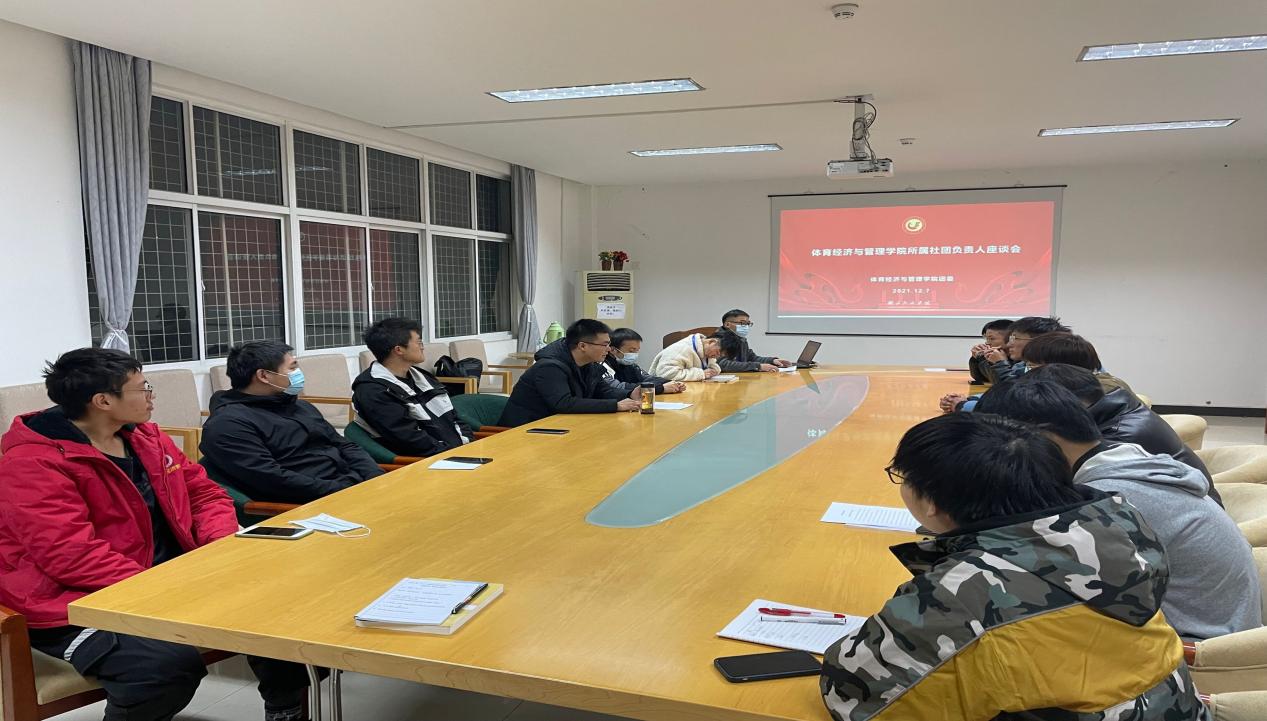 (本网讯 韩岳洋 陈俊辉)为规范公司所属A类社团管理,充分发挥体育类社团在校园体育文化建设方面的巨大作用,12月7日晚,公司团委在体育馆二楼会议室召开体育类社团负责人座谈会。公司团委书记徐盛富和公司所属的11个A类社团负责人参加座谈。会议由公司团委社团管理中心负责人刘奥玮主持。