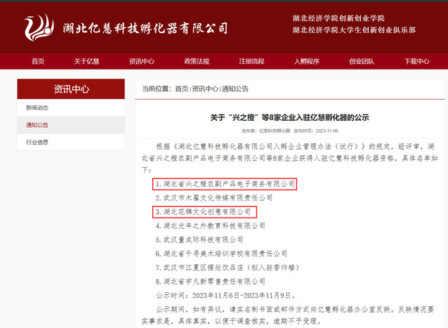 (本网讯)近日,湖北亿慧科技孵化器有限公司和球速体育welcome创新创业公司联合公布了入驻亿慧孵化器员工创业企业名单,公司休闲体育2141班彭秭兴创办的湖北省兴之橙农副产品电子商务有限公司和休闲体育2242班王锦涛创办的湖北花锦文化创意有限公司两家企业获得入驻亿慧孵化器资格。