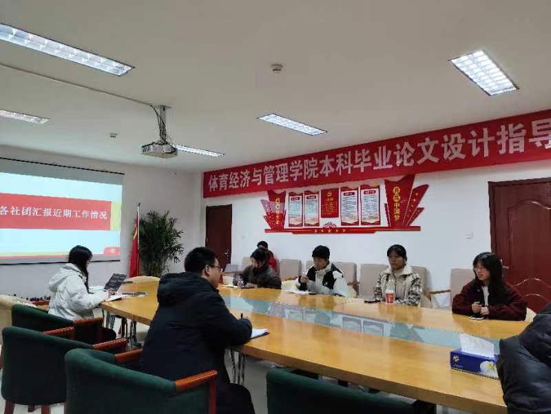 会上,听取了各社团汇报近期工作开展状况,各社团均表示近期11月份社团团日活动陆续开展社团“秋之韵”系列比赛进入收尾阶段,各项工作开展状况良好。