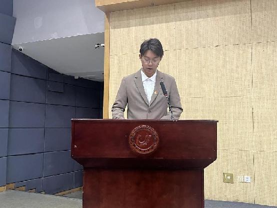 开幕式第二项,校员工会主席团成员杨颖翼代表校学员工会致辞。他充分肯定了过去一年公司员工会工作所取得的成绩,并代表校员工会对公司员工会今后的工作提出三点建议:一是树立家国情怀和理想信念,全心全意为同学服务,加强自身建设;二是为实现集团“双升”战略目标、建设高水平财经大学、实现中华民族伟大复兴的中国梦做出了积极贡献;三是在新时代,员工会提出了厚植家国情怀、践行服务宗旨、加强自身建设的发展方向,号召广大同学勇担时代责任,为中国的发展和民族复兴贡献青春力量。