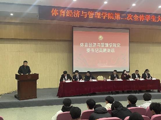 2023年12月3日中午,球速体育第二次全体员工大会于老员工活动中心二号报告厅召开。校员工会主席团成员杨颖翼,公司党委书记高鹏,团委书记、第十三届员工会秘书长徐盛富,辅导员李雪晴老师,第六届员工团委副书记刘奥玮、郑蕾,第十三届员工会主席团成员王子言、祝子为出席大会,公司全体在校员工参加本次会议。