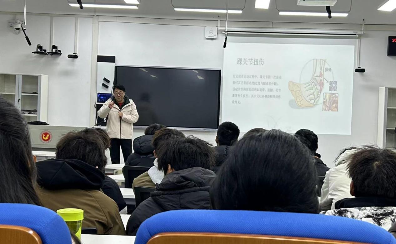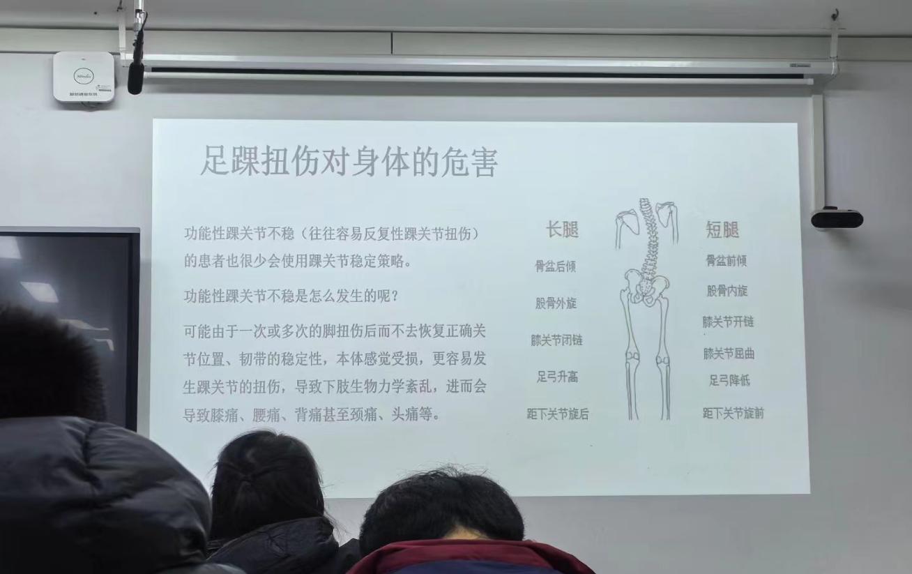 在讲堂开始后,姜医生为大家展示了一段趣味性舞蹈,大大提高了同学们的兴趣,并向大家指出踝关节在这段舞蹈中的重要性和跳舞时的踝关节活动注意事项。