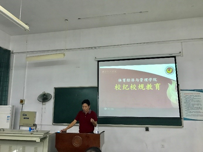 本网讯(通讯员 陈宇晴)9月16日下午6点20分,公司针对18级新生举办了有关“校纪校规”的主题宣讲会。公司党委副书记姚自平担任主讲人,团委书记郭婷婷老师、体育经济Q1841班班主任王茜老师、休闲体育Q1841班班主任谢作为老师已经全体18级员工参加了此次活动。