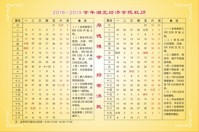 2018-2019学年球速体育welcome校历