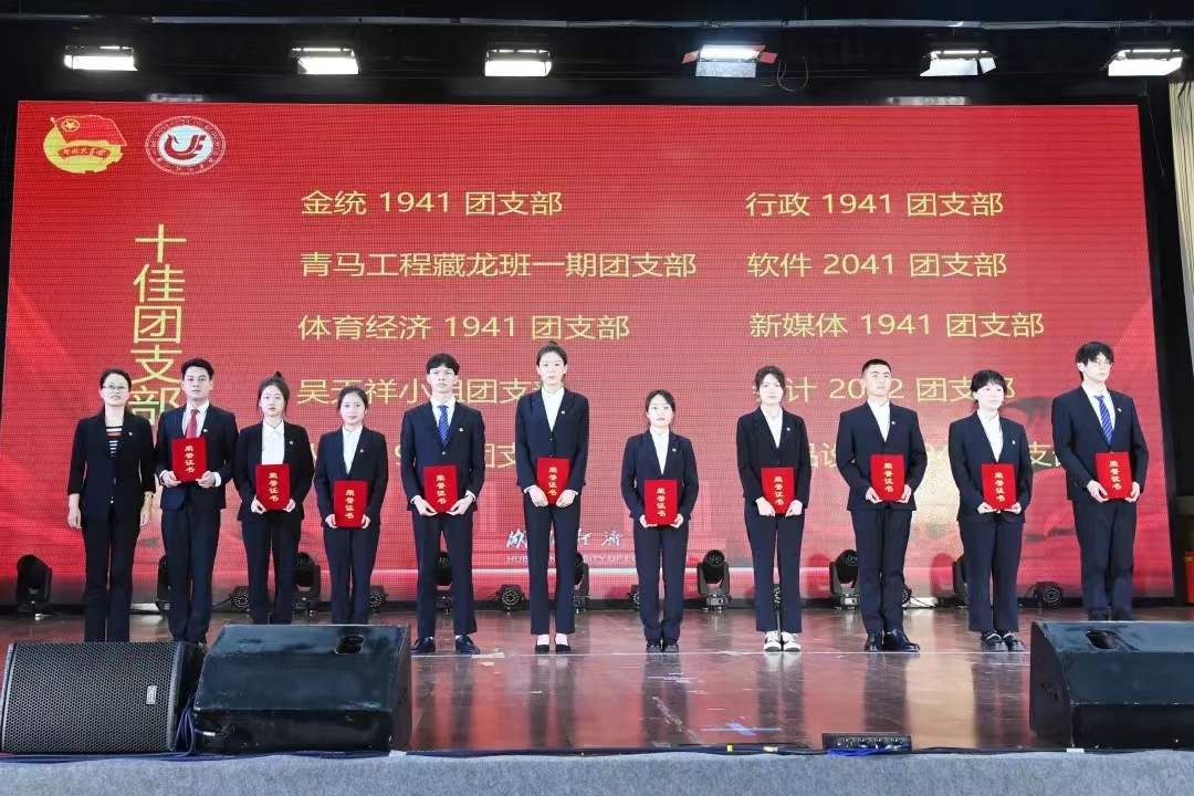在此次表彰大会中,公司分团委荣获2021年度“先进分团委”称号、体育经济1941团支部荣获2021年度“十佳团支部”称号,休闲体育1941班陈雨婷同学荣获“五四红旗标兵”称号,分别受到大会表彰。另外,公司Amazing啦啦队荣获“经院学子奖厚德奖”提名奖,在表彰大会现场播放了宣传视频。