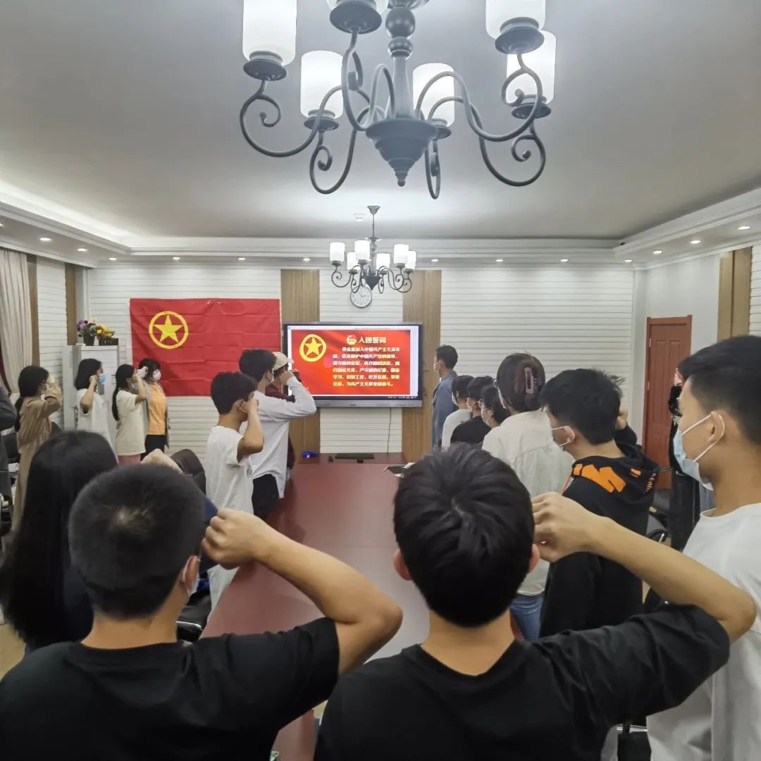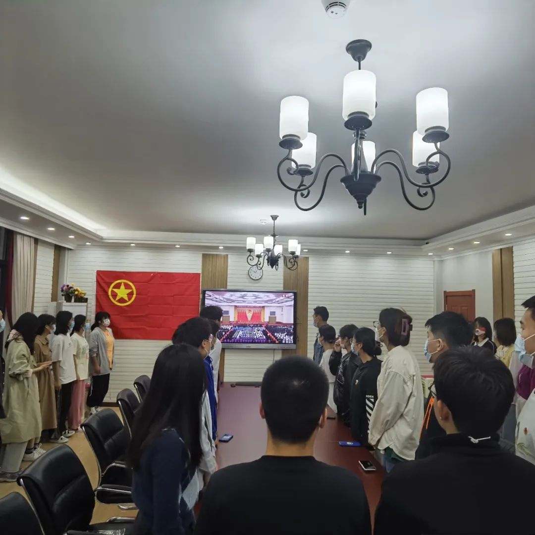 员工党支部全体党员和全体团学骨干在公司研讨室集中收看直播。