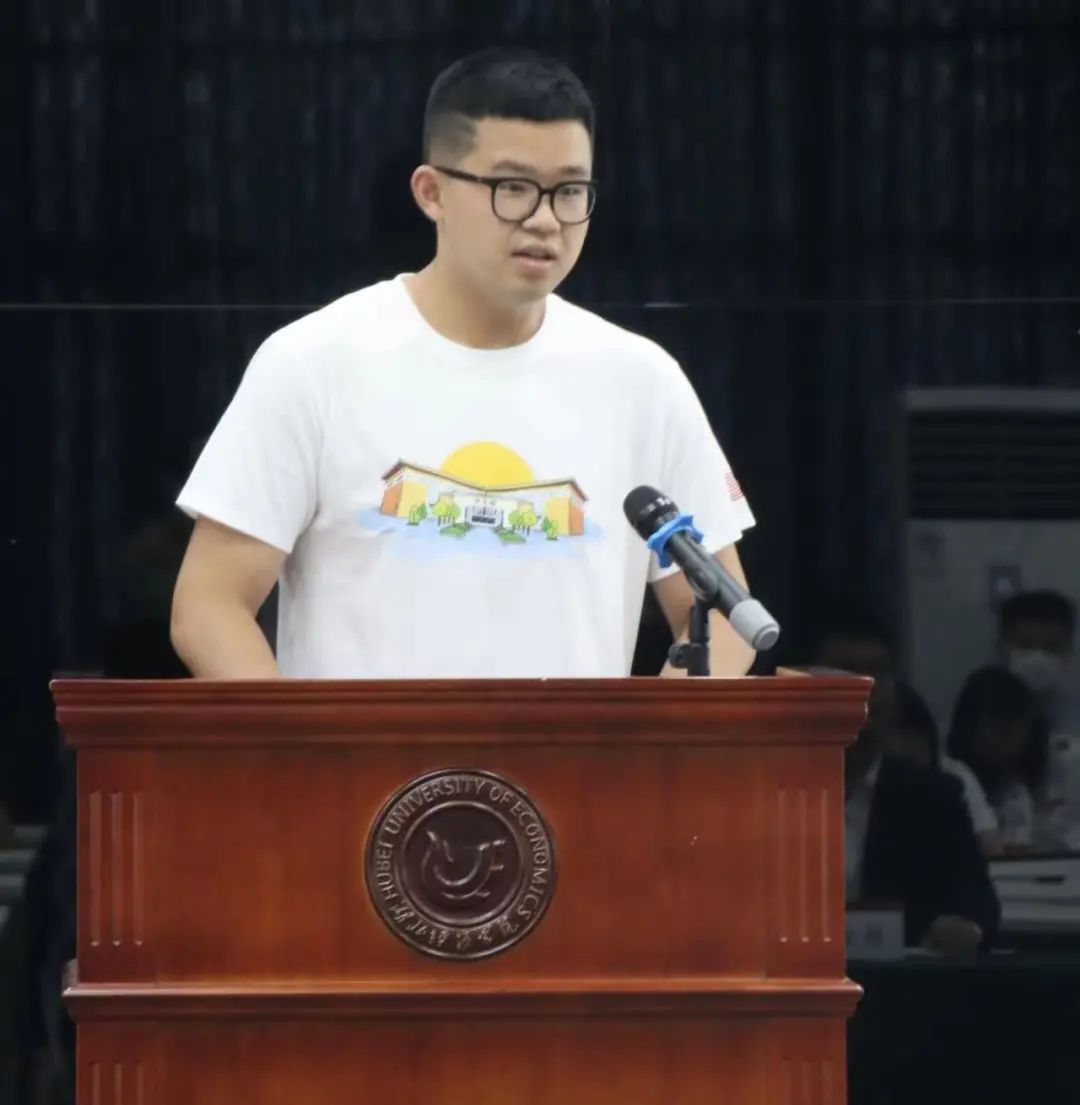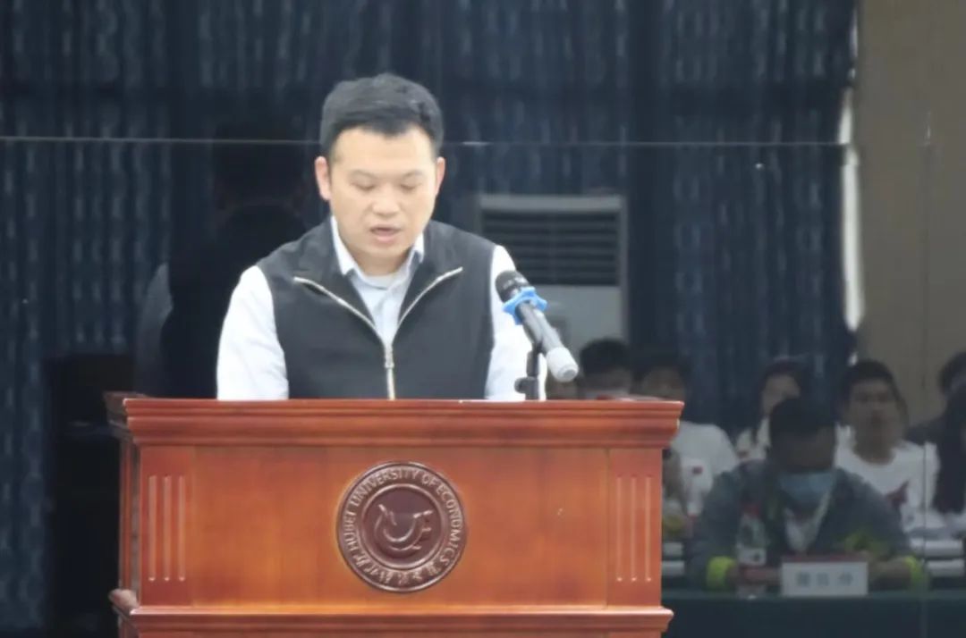 首先由高鹏副书记宣读2022届毕业生考研拟录取名单。全体院领导为考研成功上岸的优秀学子们颁发奖品并送上由衷的祝贺。休闲体育Q1841班孟凡昊同学和体育经济Q1841陈沙沙同学作为2022届考研员工代表发言。