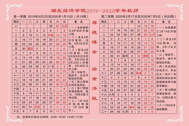 2019-2020学年校历