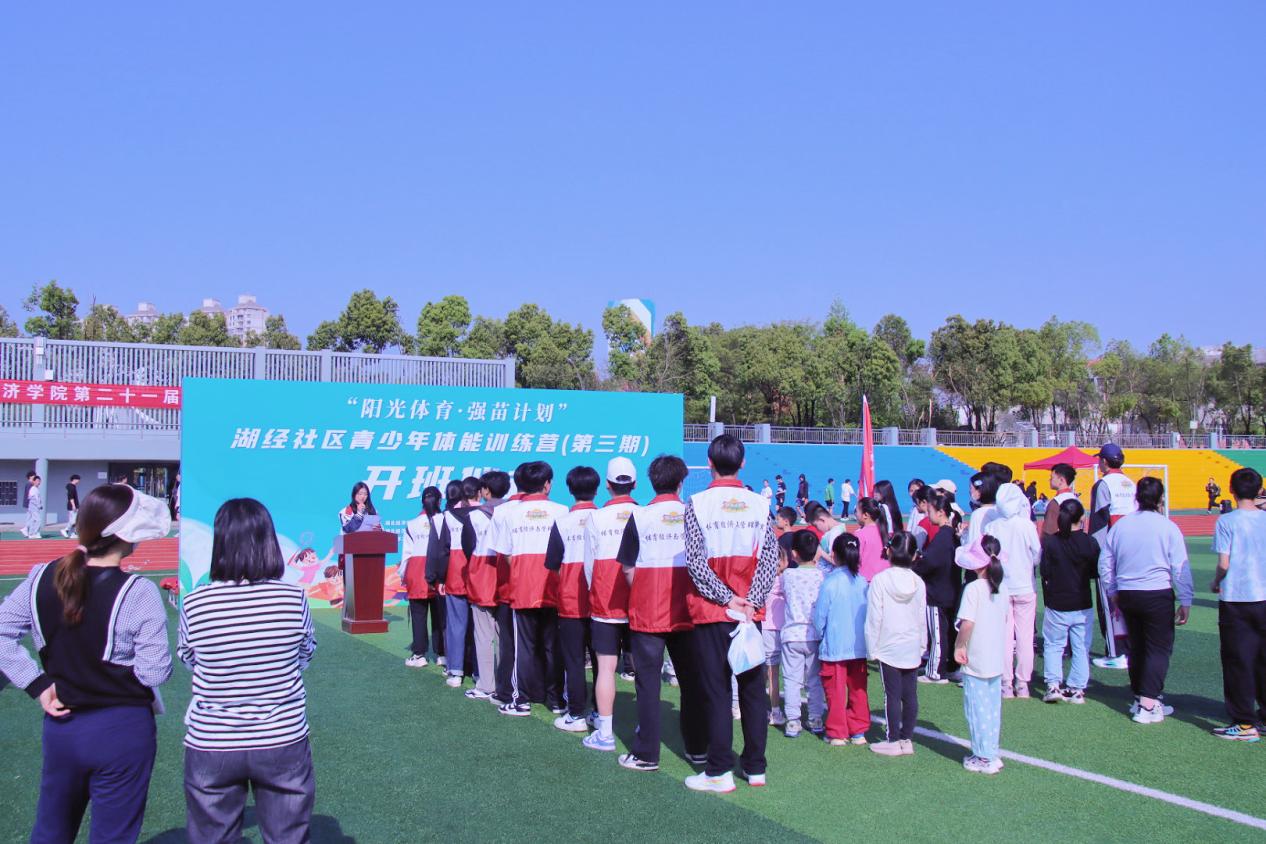 (本网讯)为积极着力找准找实党建和事业发展深度融合的结合点,推进党建与人才培养深度融合,以高质量党建引领员工高质量成长,2024年3月31日上午,由公司党委与经院社区党支部主办,“阳光体育·强苗计划”湖经社区青少年体能训练营(第三期)在西区操场上举办开营仪式。经院社区党支部副书记张晓林、公司党委书记高鹏、员工党支部书记徐盛富出席开营仪式,员工党员和入党积极分子代表、训练营学员及其家长参加活动。