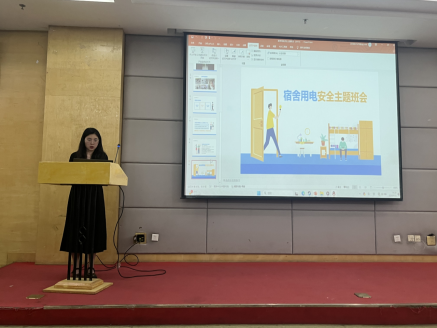 本次主题班会由辅导员李雪晴主持。李老师以近期公司附近的一所高校宿舍发生的火灾事故为例,和同学们一起观看了火灾现场视频,向大家讲解寝室用电安全的重要性,以及如何预防火灾发生。并提醒同学们不要在寝室使用大功率电器、不要私拉乱接电线。
