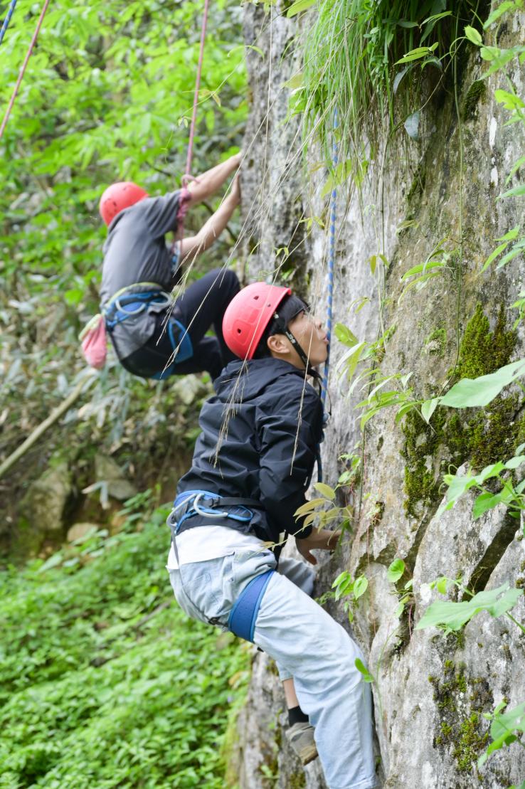 4月20日,休闲体育专业2022级户外运动专项班在王玉锋和张俊两位指导教师的带领下,顺利完成了在咸宁雨扇洞的野外实践活动。此次活动作为户外运动课程的实践环节,旨在培养员工在自然岩壁攀登、下降技术及户外活动组织与策划等方面的实践能力。